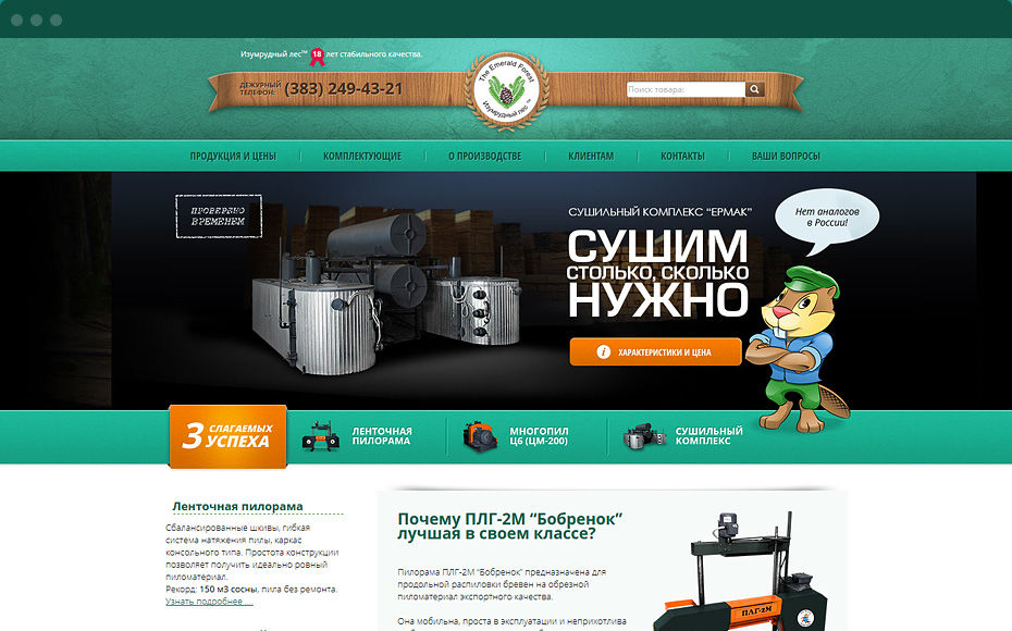 × Разработка сайтаФирменный стиль Изумрудный лес Разработка сайта производителя деревообрабатывающего оборудования с каталогом продукции pilorama54.ru → Заказать проект