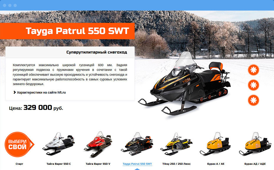 × Разработка сайта Русский снегоход Разработка промо-сайта снегоходов ототечественного производителя "Русская механика" snegohod.hft.ru → Заказать проект