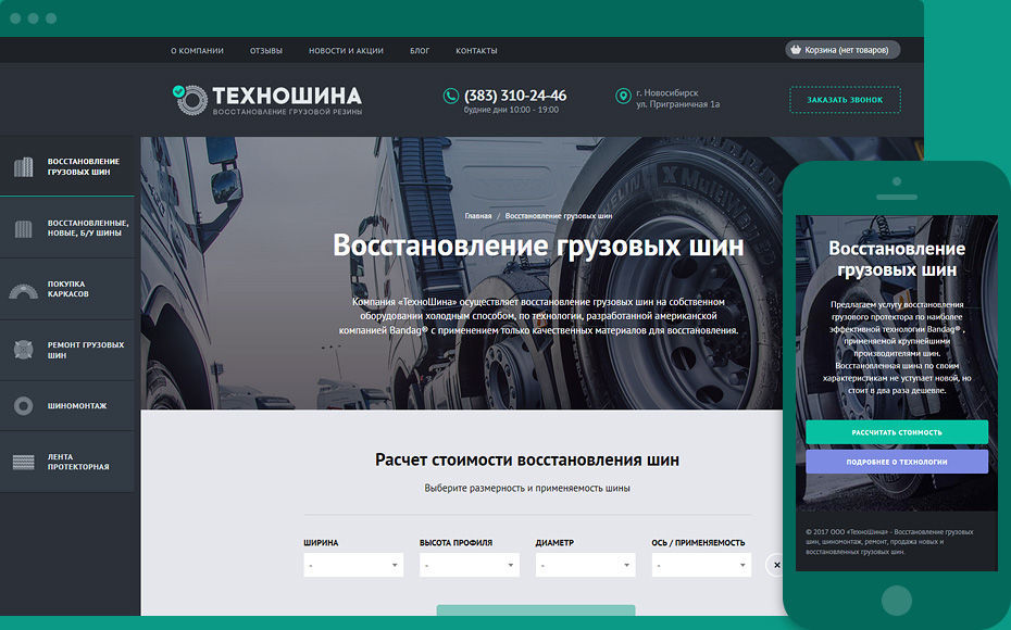 × Разработка сайта Техношина Разработка сервиса для расчета стоимости и заказа восстановления грузовых шин по технологии Bandag tehnoshina.com → Заказать проект